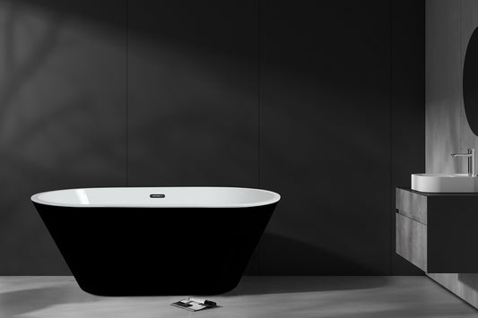 Freestanding Glossy Black Round Bathtub (60in, 67in)
